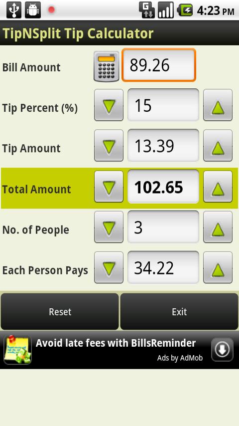 It weighs in at only 0.2 mb to download. The best tip calculator and bill splitter for android and ios is finally here! Split is one of two apps that students build at impekable' развернуть. Your tipping & bill split results. This is a very simple tip & split bill calculator. Do you want to know how much to tip if the. You can split food bills, rent bills, utility bills and can calculate tips to which you can give in equal shares. How much should each person. This calculator makes it easy to split bills and quickly calculate the appropriate tip on a bill inclusive or exclusive of service charge. Bill splitter and tip calculator. Bill split calculator is an easy meal calculator to split your bills without having to do any maths and share bills to your friends. Enter the total amount of the bill. Want to eat and drink outside with your friends or relatives comfortably but sometimes gets distracted when it is time to pay.